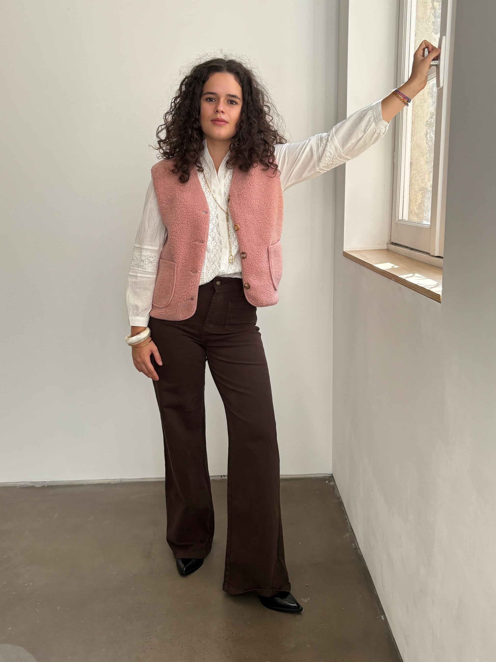 Ce jean marron taille haute à coupe droite longue met parfaitement en valeur la silhouette. Il est doté de deux poches plaquées pratiques et d’une coupe qui allonge la jambe pour un look élégant et moderne. Un basique incontournable à adopter sans hésiter.
