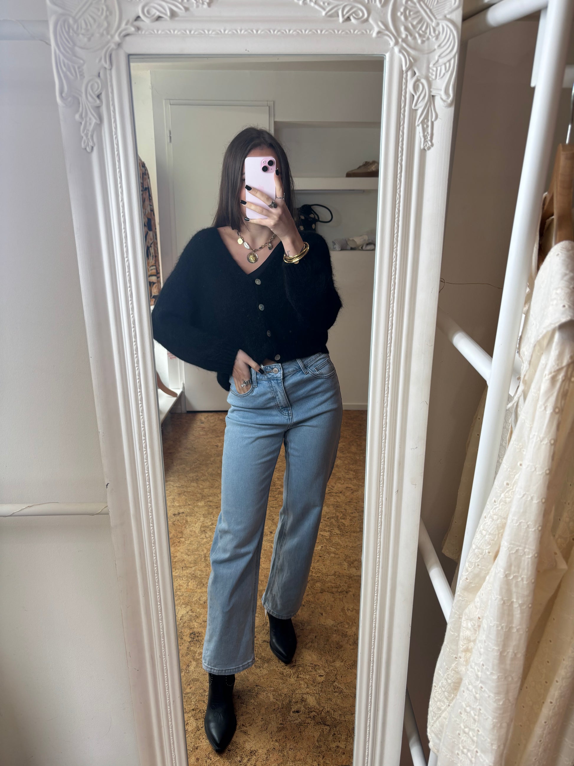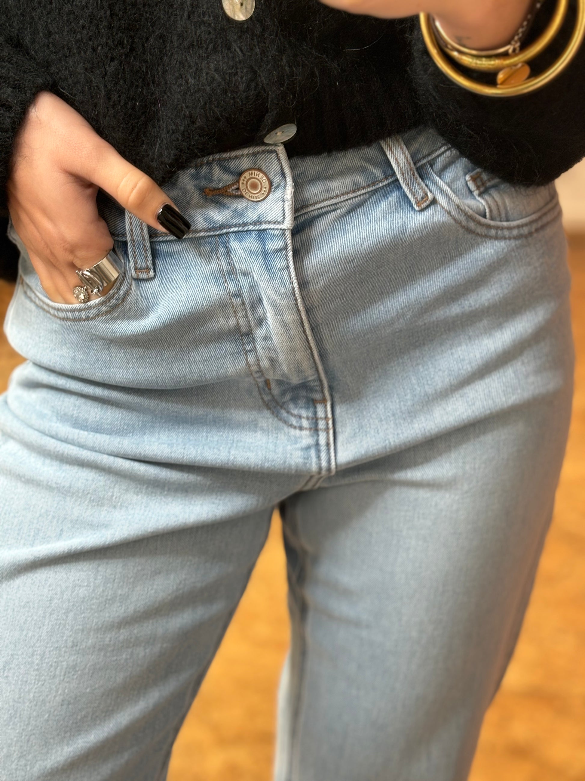 Le jean Maeva en bleu clair à taille haute offre une coupe droite classique et élégante. Il met en valeur la silhouette tout en restant confortable et facile à porter, pour un look moderne et intemporel.