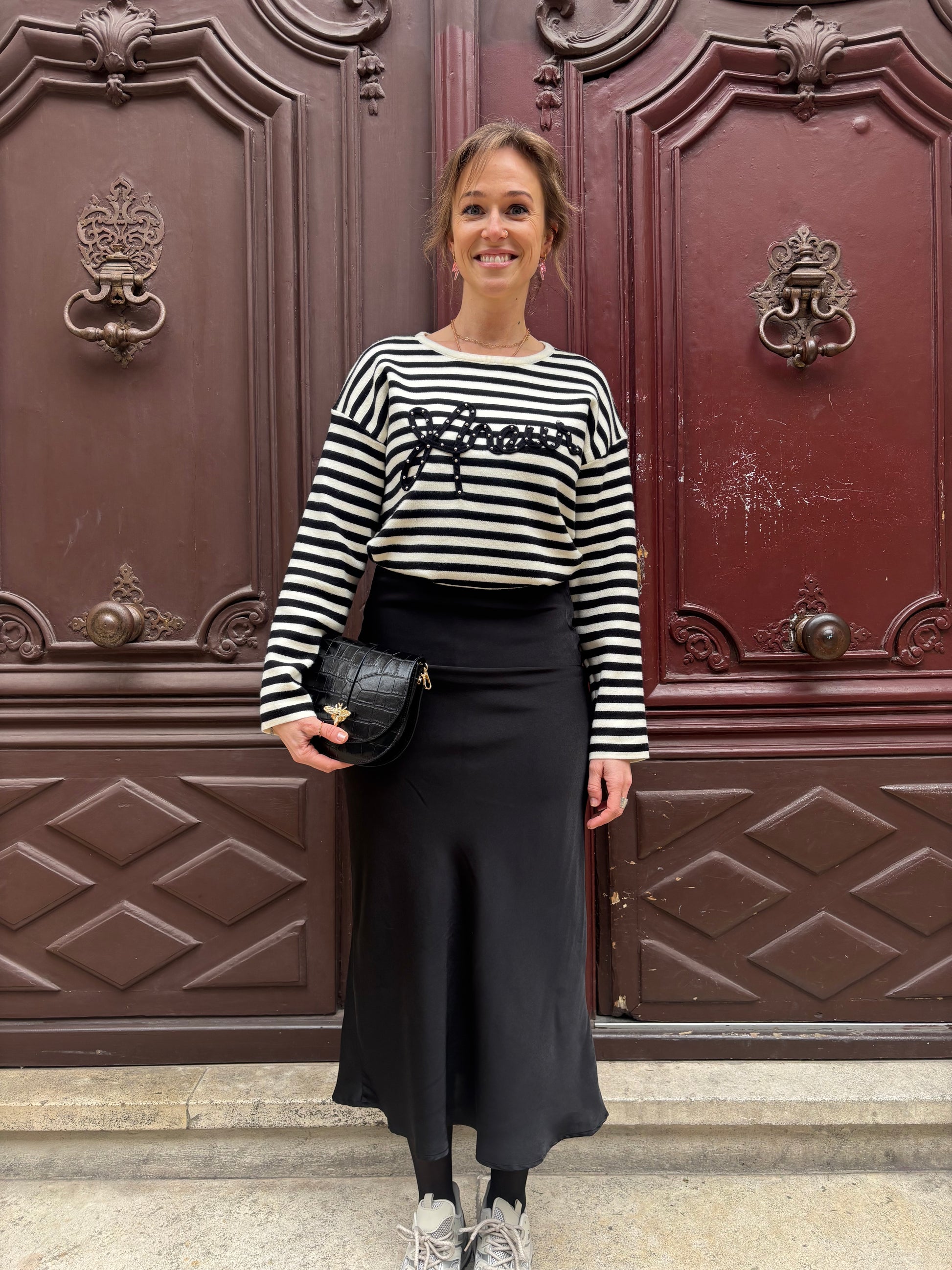 Laissez-vous séduire par cette jupe longue satinée au tombé fluide et à la coupe subtilement évasée. Disponible en kaki pour un style naturel ou en bordeaux pour une allure sophistiquée, elle est la pièce parfaite pour illuminer vos journées et sublimer vos soirées💫