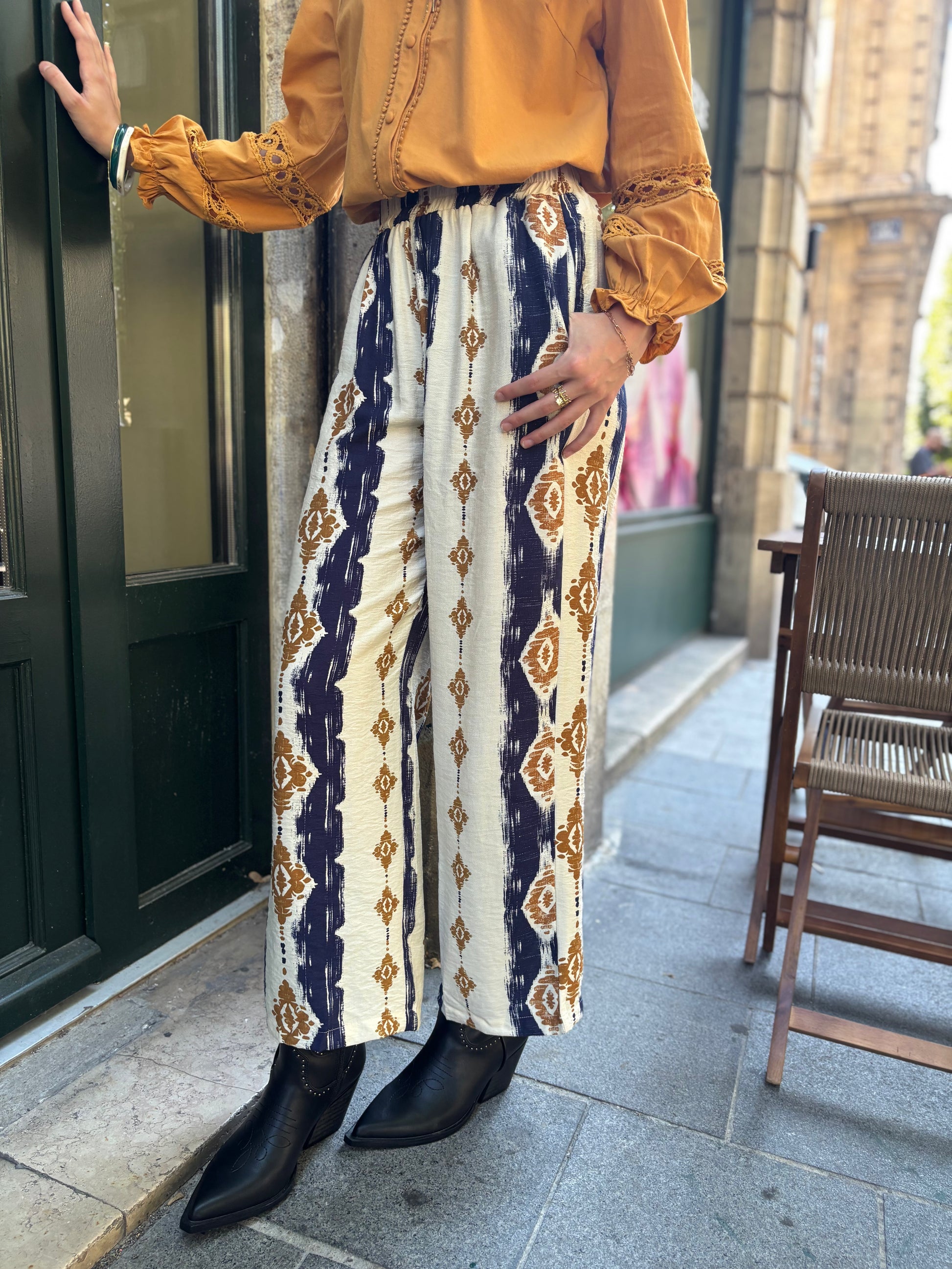 Le pantalon Inaia incarne l’esprit bohème avec élégance et confort.