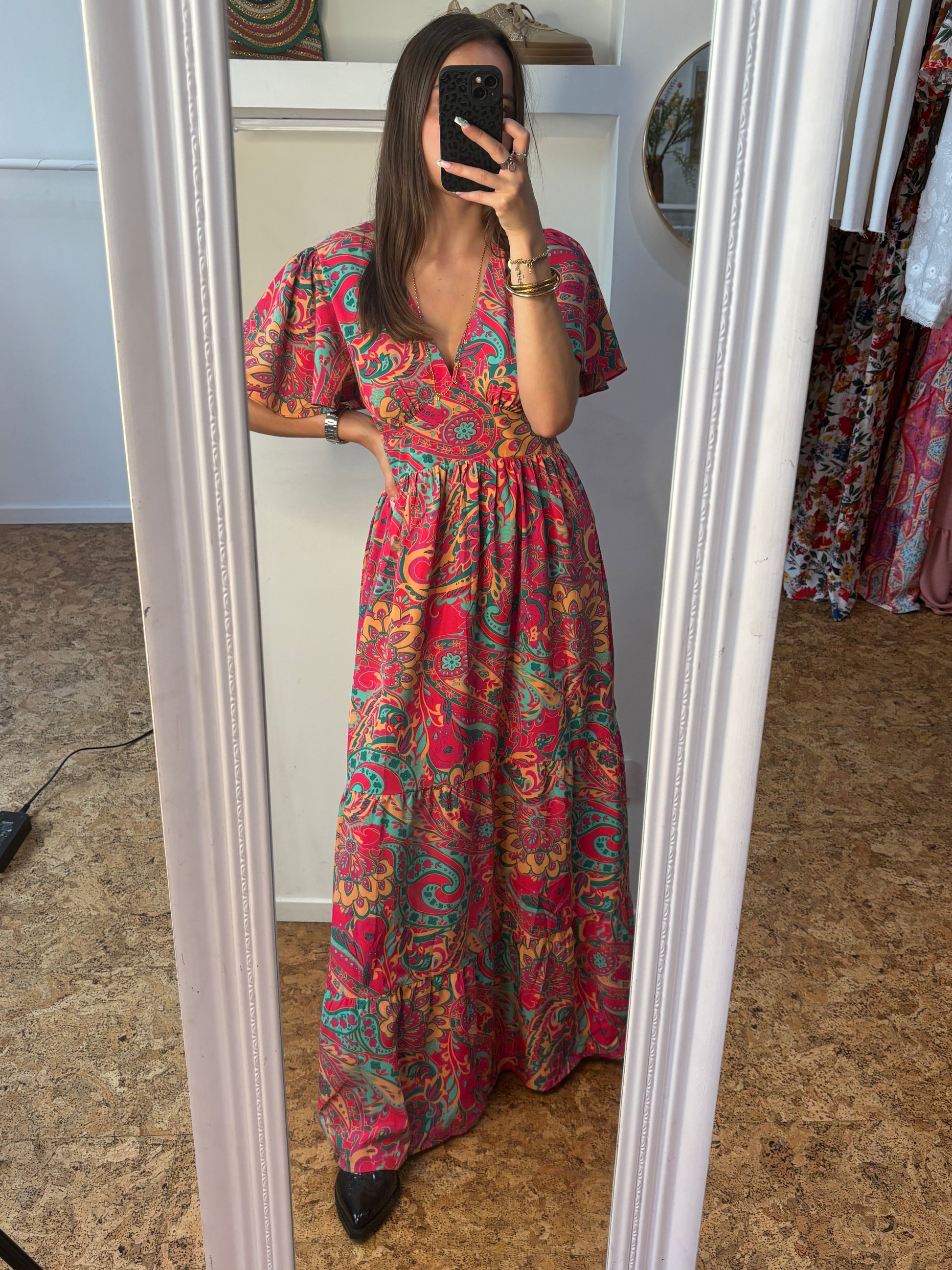 Robe longue "Malia" – Fuchsia mandala